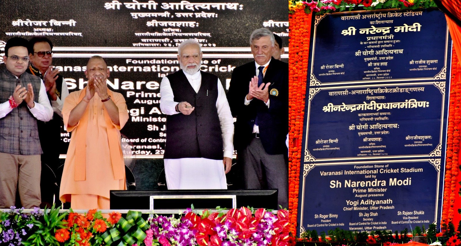 - वाराणसी में अंतरराष्ट्रीय क्रिकेट स्टेडियम के आधारशिला समारोह में शामिल हुए सीएम योगी