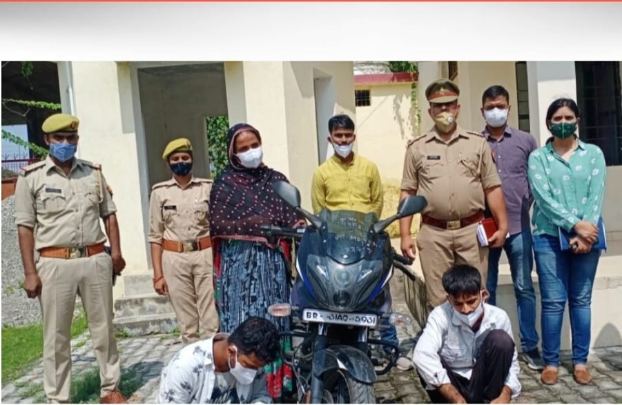 पुलिस अधीक्षक अमरेंद्र प्रसाद सिंह ने सोमवार को राबर्ट्सगंज कोतवाली में मामले का खुलासा करते हुए बताया कि पुलिस टीम को मुखबिर से सूचना मिली कि 18 अगस्त को पंजाब नेशनल बैंक रोडवेज तिराहे के पास घटित घटना लूट एवं अम्बेडकर नगर में हुए नकबजनी से सम्बंधित अभियुक्तगण दण्डइत बाबा मन्दिर परिसर में मौजूद हैं। यदि शीघ्रता दिखाई जाये तो पकड़े जा सकते हैं । सूचना पर पुलिस टीम द्वारा मुखबिर के बताये गये स्थान पर जाकर देखा गया तो मन्दिर के अन्दर दो पुरुष एवं एक महिला बैठे दिखाई दिये जो पुलिस टीम को देखकर घबरा गये। मन्दिर के बाहर से ही लूट में प्रयुक्त मोटरसाइकिल भी बरामद कर लिया गया। मौके से तीनों ही अभियुक्तगण को आवश्यक बल प्रयोग कर हिरासत में ले लिया गया। पूछताछ में उन्होंने अपना नाम पूछने पर तीनों ने अपना नाम रोहन तिवारी निवासी छिपीटोला चौहट्टा, थाना नगर हाजीपुर, जनपद वैशाली, बिहार, राहुल कुमार तिवारी निवासी दिग्घीकला, थाना नगर हाजीपुर, जनपद वैशाली, बिहार तथा रीना देवी निवासिनी छिपीटोला चौहट्टा, थाना नगर हाजीपुर, जनपद वैशाली,बिहार बताया। पूछताछ में उनके द्वारा बताया गया कि लूट की घटना में राजा तिवारी निवासी कमालपुर सिंधिया, थाना बिठ्ठुपुर, जनपद वैशाली, बिहार व रचित तिवारी निवासी छिपीटोला, चौहट्टा, थाना हाजीपुर, जनपद वैशाली, बिहार भी सम्मिलित थे, जो फरार हैं। महिला रीना तिवारी उपरोक्त लूट एवं नकबजनी का माल अपने पास रखती थी । पुलिस ने आरोपियों के पास से लूट का 43 हजार रुपया नगद, घटना में प्रयुक्त बजाज पल्सर मोटरसाइकिल, दो आधार कार्ड व एक पंजाब नेशनल बैंक का पासबुक तथा नकबजनी का 25हजार रुपया नगद, एक जोड़ी पायल, चार अदद सफेद धातु का बना मीना बरामद किया गया । गिरफ्तार आरोपियों के खिलाफ मुकदमा दर्ज कर चालान कर दिया गया। वही फरार आरोपियों की तलाश की जा रही है। पुलिस टीम में सुभाष चन्द्र राय, प्रभारी निरीक्षक थाना रॉबर्ट्सगंज, श्यामबहादुर यादव प्रभारी एसओजी टीम, सरोजमा सिंह, प्रभारी सर्विंलांस सेल, अमित कुमार त्रिपाठी, प्रभारी स्वाट टीम, कृष्णावतार सिंह, प्रभारी चौकी कस्बा रॉबर्ट्सगंज, ज्ञानेन्द्र सिंह, प्रभारी चौकी सुकृत, आरक्षी उमेश गौतम, रविन्द्रनाथ मिश्रा, विनोद कुमार यादव, अजीत यादव, हसनैन अहमद, सिम्पी सिंह, जगदीश मौर्या, अरविन्द सिंह, चन्द्रभान यादव, अमर सिंह, जितेन्द्र यादव, रितेश सिंह पटेल, हरिकेश यादव, प्रकाश सिंह शामिल रहे।