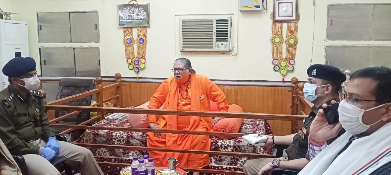 एसएसपी पहुंचे अन्नपूर्णा दरबार महंत से मिल जाना व्यवस्थाओं का हाल