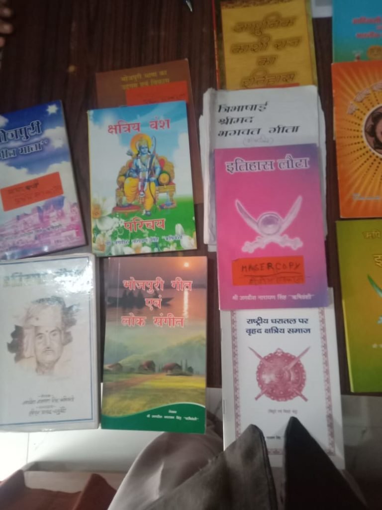 श्री सिंह ने बताया कि उनकी किताबें इतिहास लौटा, ऋषिवंशी क्षत्रियों का इतिहास, राष्ट्रीय धरातल पर वृहद क्षत्रिय समाज, नई खोज नई विचारधारा, आदिवासी संस्कृति एवं भारतीय सभ्यता, आधुनिक काशीराज का इतिहास, भोजपुरी भाषा का उद्गम और विकास, छत्रिय वंश परिचय नामक गद्य में संकलित तथा भोजपुरी गीत एवं लोक संगीत, भोजपुरी गीत माला इत्यादि किताबों का प्रकाशन हो चुका है l इन कृतियों के प्रकाशन में सबसे बड़ा योगदान जेष्ठ पुत्र पूर्व मंत्री उत्तर प्रदेश सरकार वीरेंद्र सिंह का है l उन्होंने कहा कि जब तक जीवन है अपनी लेखनी द्वारा समाज के व्यक्तित्व और कृतित्व को प्रदर्शित करते रहेंगे l