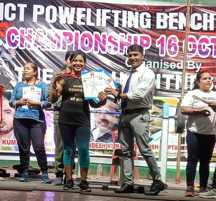 दुद्धी, सोनभद्र– नगर निवासी अध्यापिका वंदना कुशवाहा ने डिस्ट्रिक्ट पावर लिफ्टिंग बेंच प्रेस एंड डेडलिफ्ट चैम्पियनशिप 2022 में दो-दो गोल्ड जीतकर क्षेत्र का नाम रौशन किया है। फिटनेस को लेकर लड़कियों व महिलाओं में जागरूकता लाने वाली श्रीमती कुशवाहा ने इससे पहले भी कई चुनौतियों का सामना करते हुए, अपना परचम लहराया है।