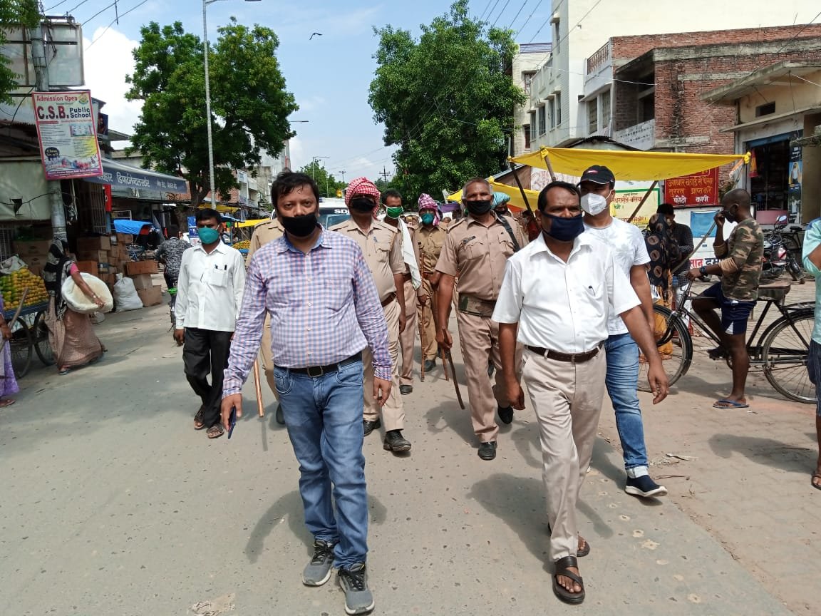 एसडीएम संग प्रशासन ने बिल्थरारोड में कंटेनमेंट जोन बना इलाका किया सील ,बिना मास्क वालों की अब खैर नहीं, सेनेटाइजर बगैर दुकान संचालन पर लगाया रोक